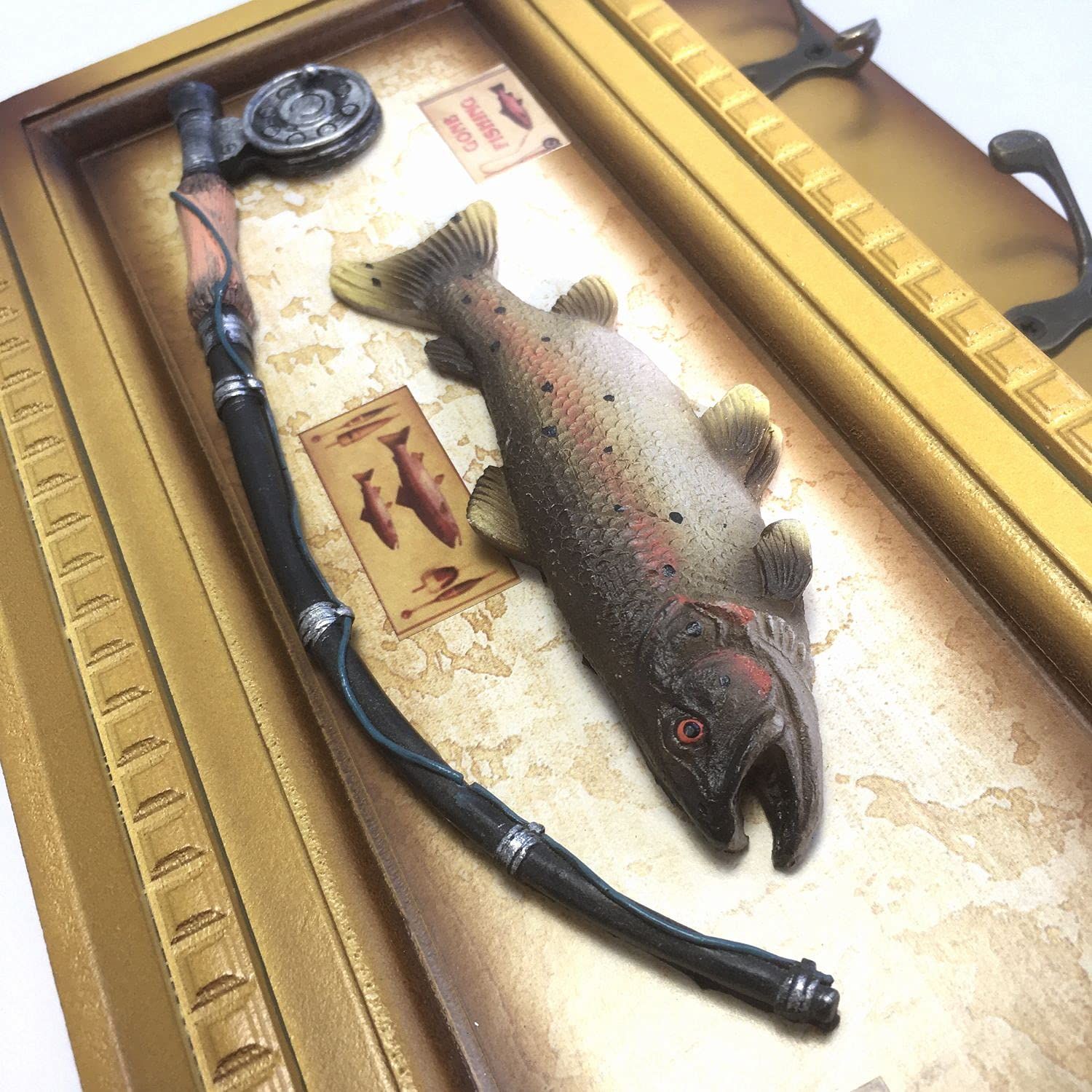 ニジマス フライロッド フライリール壁掛け ルアー掛け レインボートラウト インテリア 虹鱒 渓流 タックルボックス アウトドア スライド式 壁掛け