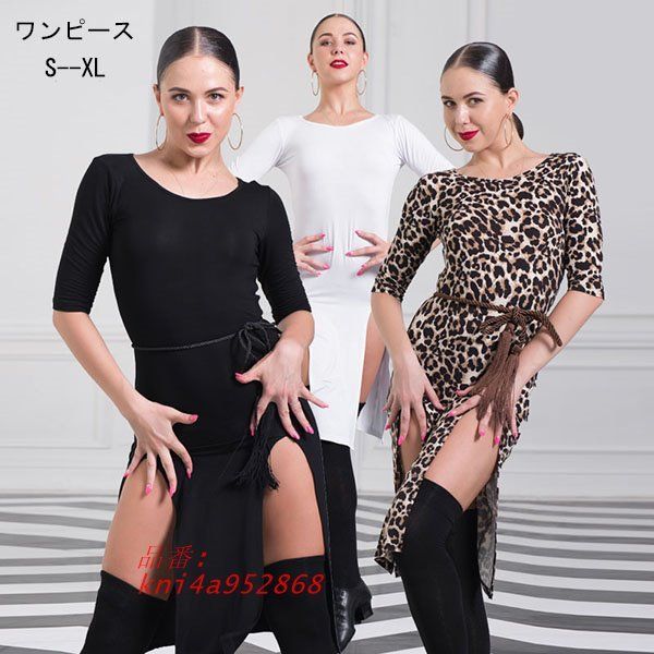 ラテンダンス ダンス衣装 モダンドレス ワルツ 社交ダンス衣装 パーティー用 ステージ衣装 ダンスウエア イベント ワンピース ホワイト ブラック ヒョウ柄 Z7LA