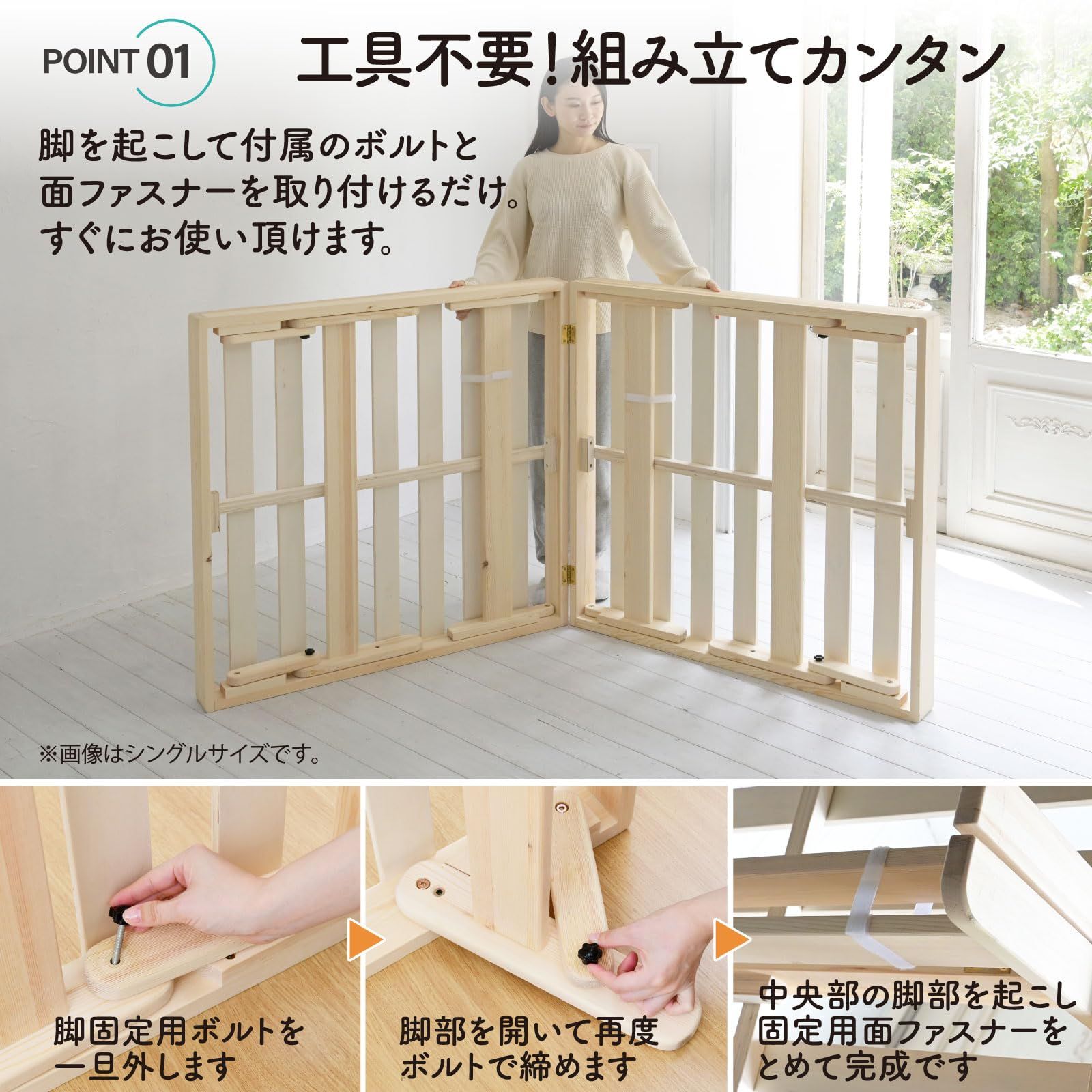 【通気性の良いすのこタイプ】湿気を逃がし、蒸れを防ぐ通気性の良いすのこタイプです。厚さ1.5cmのすのこを使用し、体重をしっかり支えます。