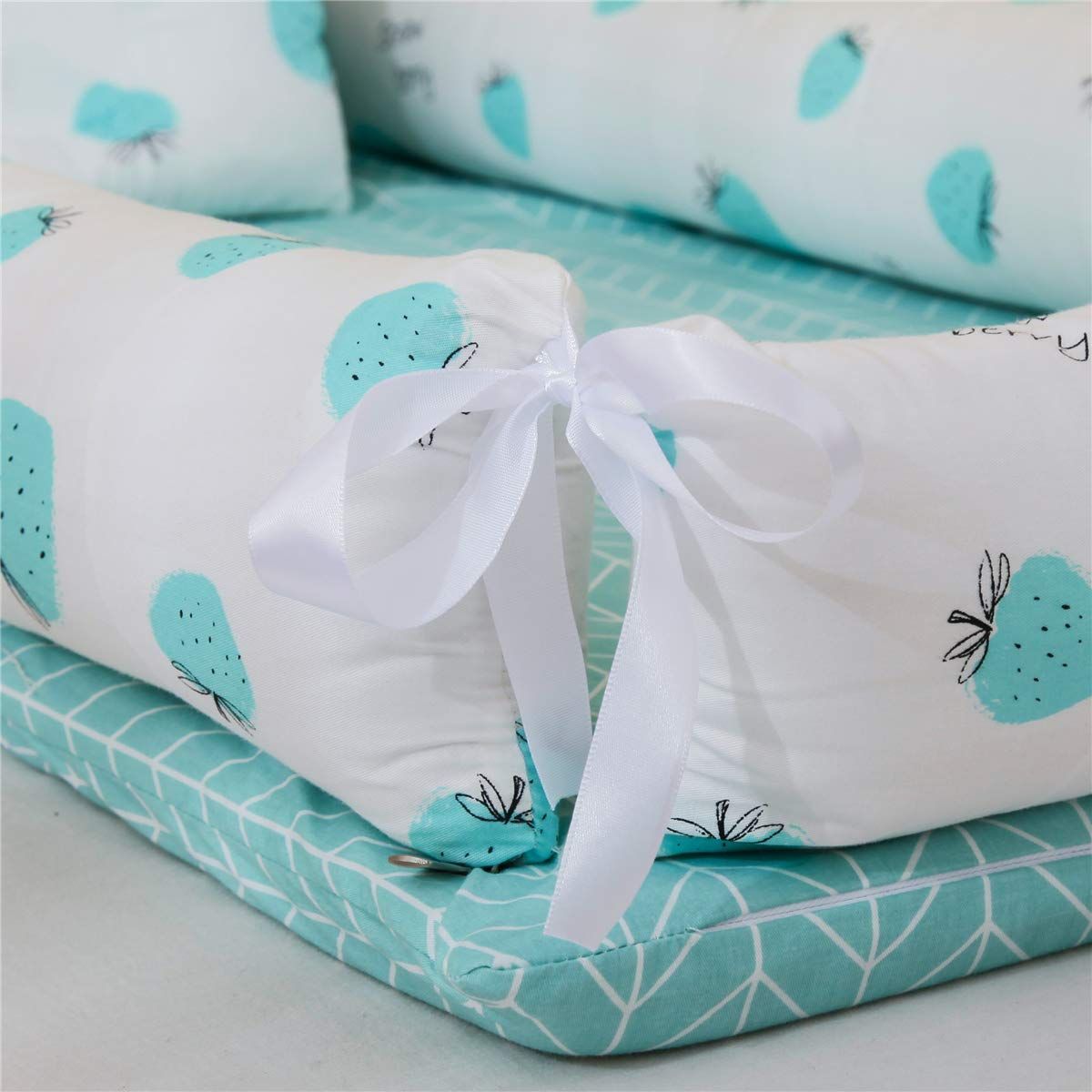 数量 95 55 35 cm イチゴ-グリーン 0-36ヶ月 通気性洗濯 出産祝い ポータブル 添い寝 ベビーベッド ベッドインベッド 枕付き シーツ付き 新生児 Luddy