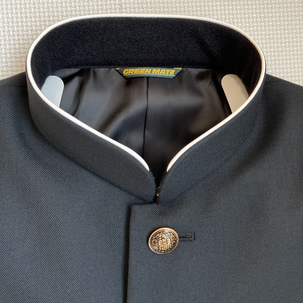 ♥品 混紡 黒サージラウンドカラー 学生服 上着のみ 学ラン 165 AB N10090 毛50% ポリエステル50% 中学 高校 詰襟 NIKKE Green Mate ホームウォッシャブル