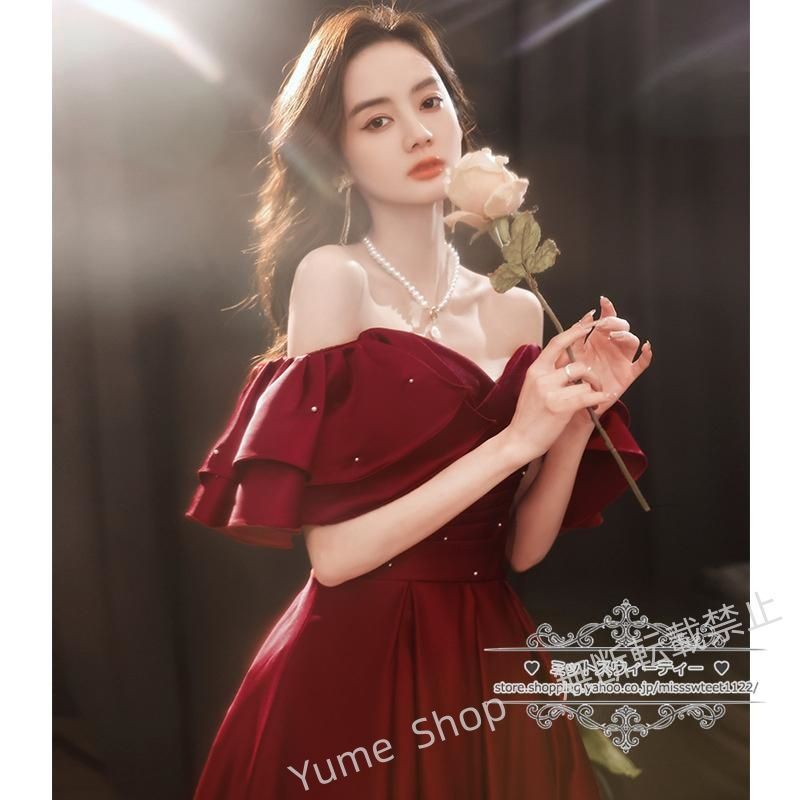 ♥ カラードレス ロングドレス パーティードレス 発表会 演奏会 ステージ イブニングドレス 赤 ワインレッド オフショルダー ウェディングドレス 結婚式 二次会 nhdw 11
