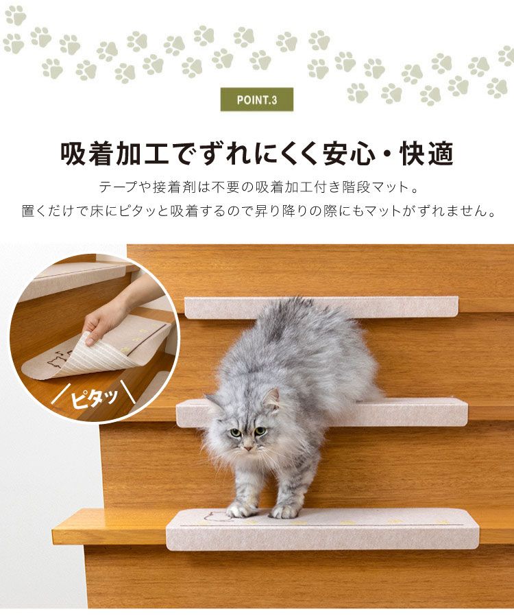 ネコ サンコー おくだけ吸着 蓄光 階段マット 入 滑り止め 滑らない マット 撥水 はっ水 床暖房対応 消臭加工 折り曲げ可 ペット用 犬 いぬ 国産 ライトベージュ