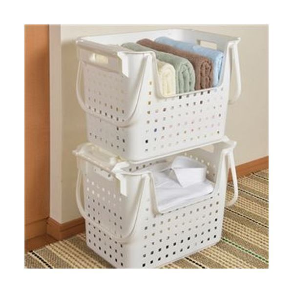まとめ ヒマラヤ化学 積重ねワイドバスケット ホワイト