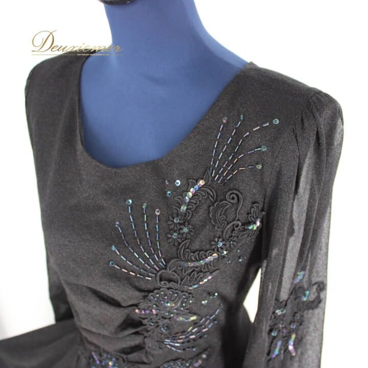 #社交ダンス衣装 #ダンスドレス #モノトーン #ブラックドレス #スパンコール #花柄 #日本製 #ファスナー #肩パッド #ウエスト #レーヨン #ポリエステル #ドレスアップ #ダンスウェア #フォーマル #衣装 #パーティー #トルソー #Mサイズ #ENUTSU