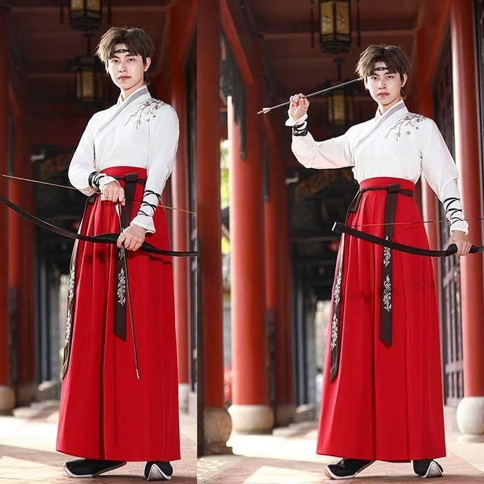 漢服 メンズ コスプレ衣装 華流コスチューム メンズ唐装漢服 鶴刺繍 美しい セットアップ 長袖 交差襟 トップス ロングスカート