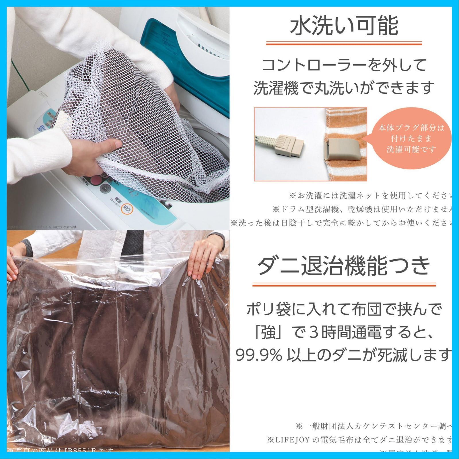 ライフジョイ 電気毛布 日本製 掛け 敷き 兼用 188cm×130cm 洗える 両面フランネル 室温センサー付 タイマー機能無 ふわふわ モカ JCBR803M
