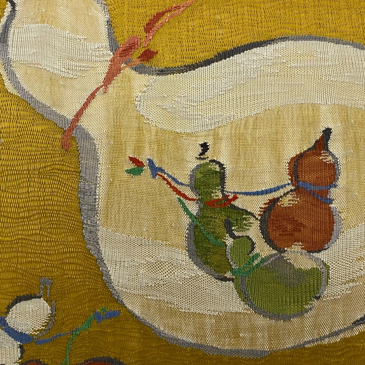 袋帯 秀品 夏帯 関西仕立て 瓢箪 黄土色 お太鼓柄 正絹
