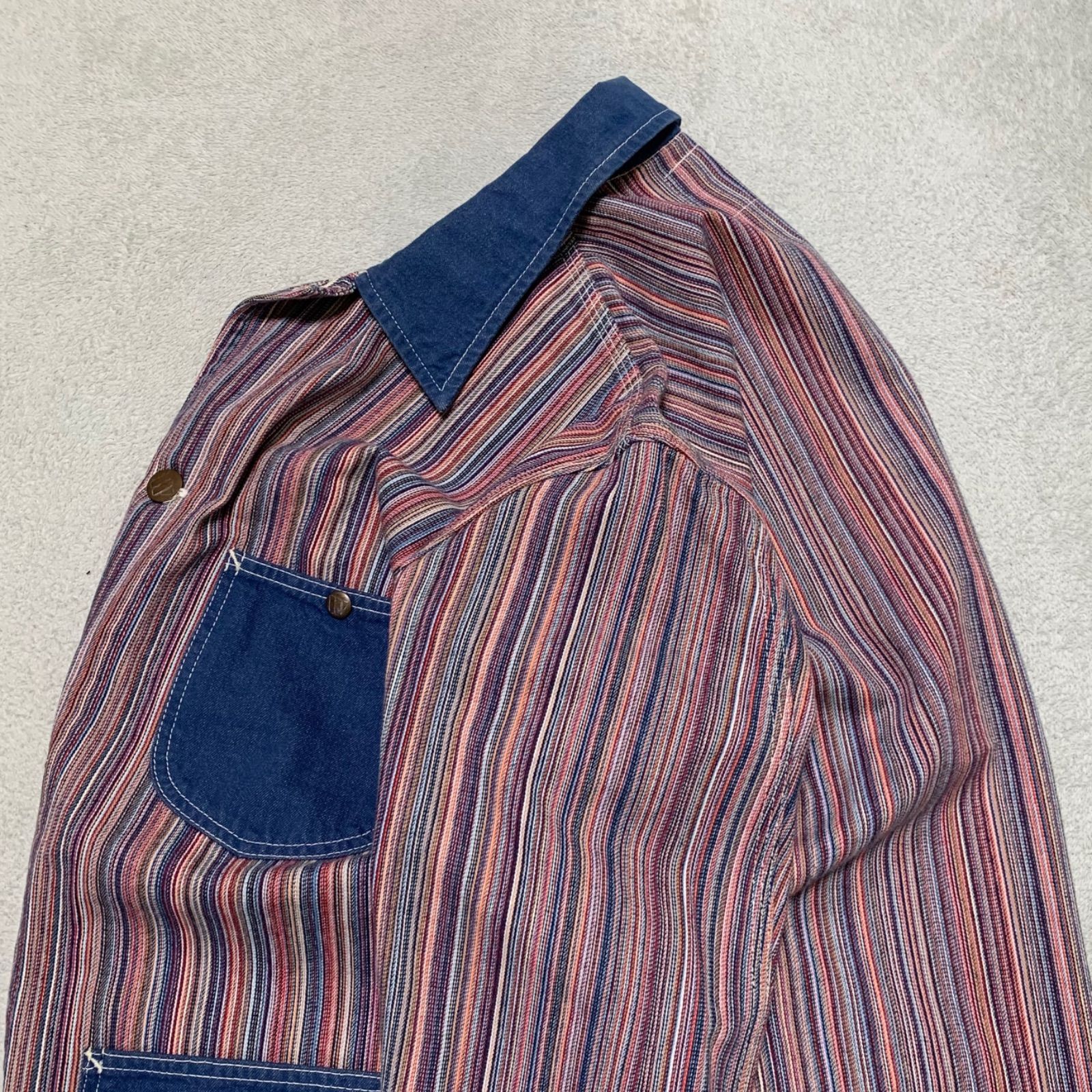Multi Stripe カバーオール ワークジャケット デニム 切り替え マルチストライプ サイズ40 マルチ インディゴ ウエアハウス