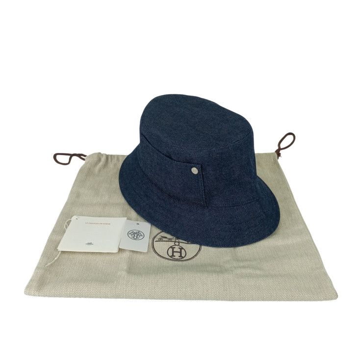 送料無料 HERMES エルメス 帽子 ハット ≪ヘレン≫ シルキー H232029N インディゴ コットン100% ユニセックス バケットハット シルバー金具 超美品