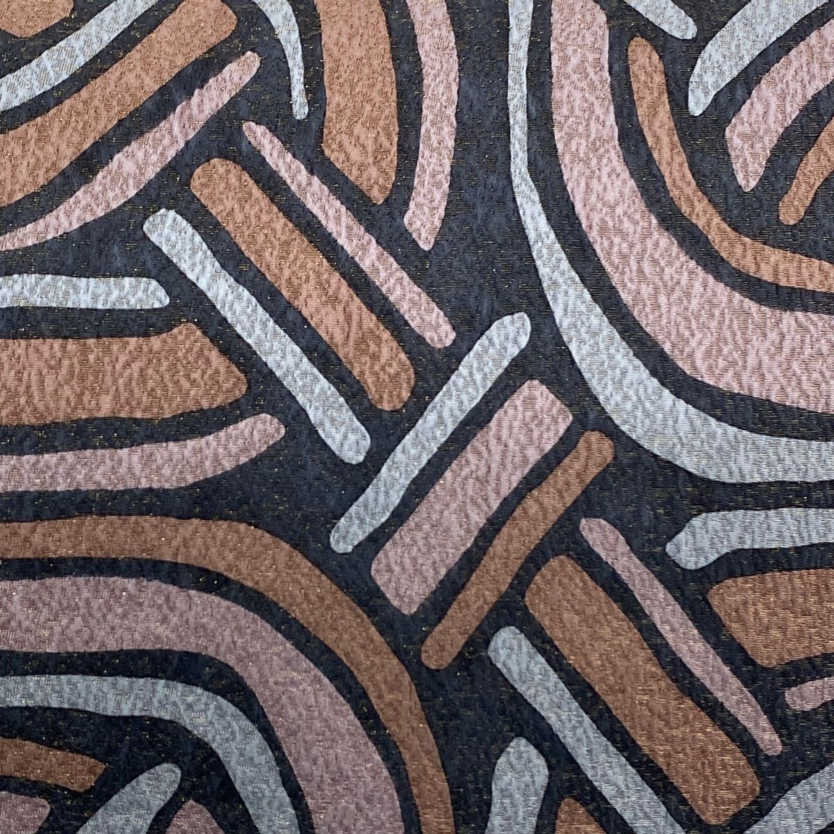 名古屋帯 秀品 幾何学模様 金糸 黒灰 正絹