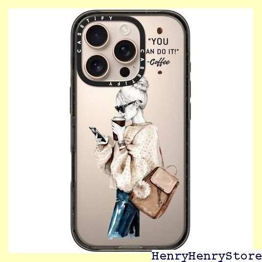 CASETiFY インパクト iPhone 16 Pro ケース スリム / 2.5mの落下試験をクリア MIL規格4倍相当 / ワイヤレス充電に対応 - Girl and coffee - クリア ブラック 1956