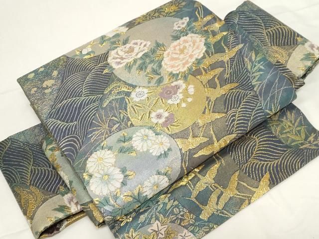 平和屋着物 つけ帯 正倉院飛鶴花蝶文 金糸 正絹 dy