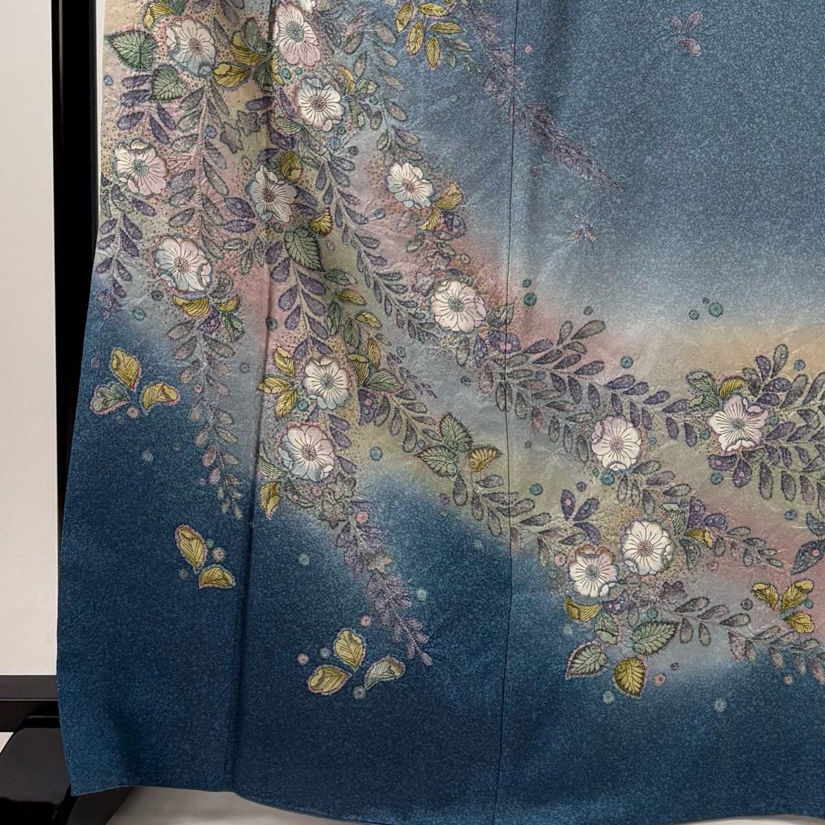 訪問着 身丈167 cm 裄丈67 M 袷 辻が花 金彩 ぼかし 青灰色 正絹