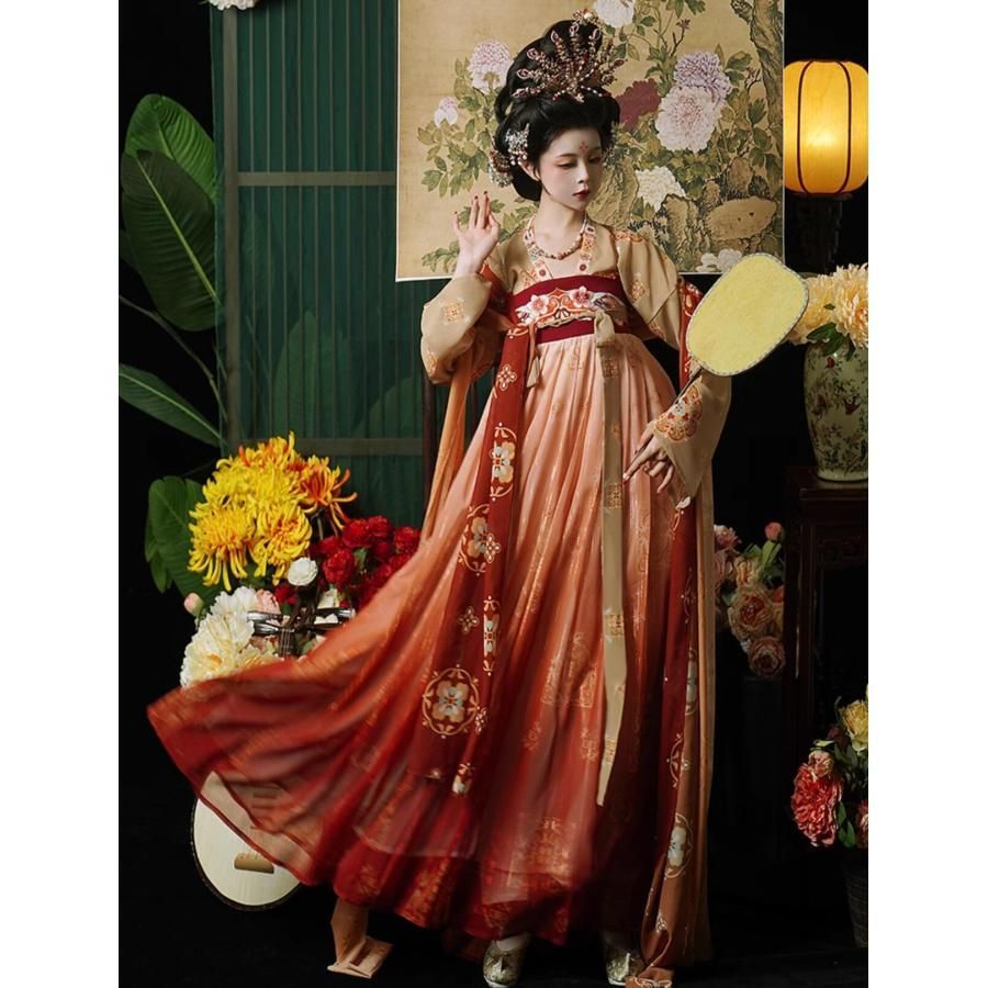 漢唐古典チャイナ服 レディース 唐時代 豪華 宮廷 漢服 振袖羽織付き 中華衣裳 中国古代服装 華流 中華ドラマ 皇后 貴妃 コスチューム