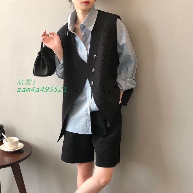 ベスト レディース ショートパンツ 上下セット 2点 夏 ジレベスト 薄手 前開き ジレ ハーフパンツ セットアップ チョッキ 短パン ワイドパンツ サマーベスト サマーパンツ レトロ カジュアル 半ズボン カーキ ブラック通気性に優れた薄手素材で夏でも蒸れなくて快適な着心地レディースサマージレ ショートパンツの上下2点セットゆったりサイズ感でカジュアルな印象そしてストレスフリーシンプルでチラリと個性を出し、シャツやTシャツを着る時期に重宝生地には上品な凹凸デザインがあるのも見逃せないおしゃれポイント落ち着きのある定番のカラバリが用意され、合わせやすさも高い一緒に着てもよろしい、別々でほかのアイテムとの組み合わせも楽しめますカラー:カーキ ブラック素材 ポリエステルサイズ(CM) M LM ベスト 着丈64(前) 73(後ろ) バスト116 パンツ 総丈50 ウエスト62 ヒップ88 ワタリ66L ベスト 着丈65(前) 74(後ろ) バスト120 パンツ 総丈51 ウエスト66 ヒップ92 ワタリ70ご注意:※素人採寸ですので、若干の誤差がございます、ご了承ください。