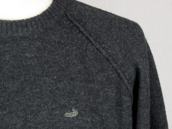 秋冬 クロコダイル クルーネックセーター ニット カシミヤ混 毛ナイロン クロコダイルマーク付 チャコール M L LL