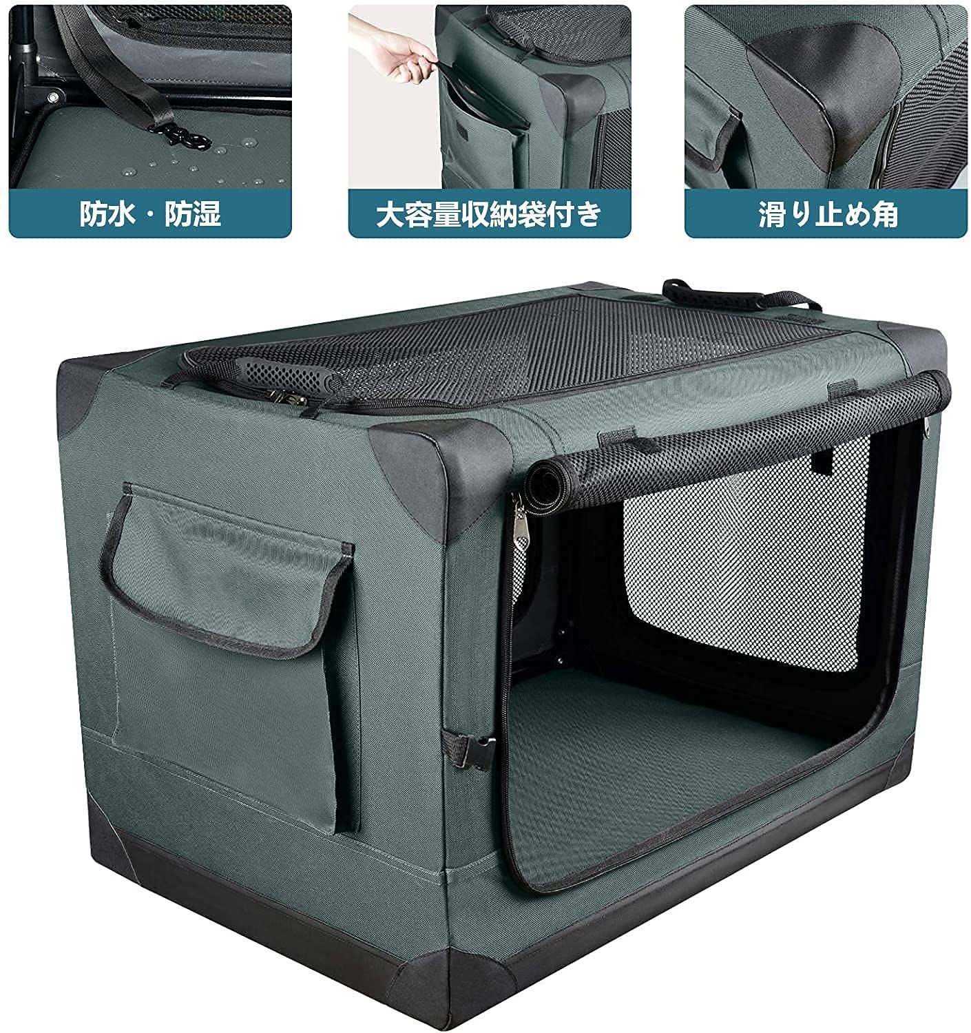 猫用キャリー カート 持ち手付き 犬用クレート 犬猫兼用 犬ケージ 折りたたみ簡単 室内休憩 急な来客時 アウトドア 病院 キャンプに大活躍 折りたたみペットケージ ball L Totoro ダークグリーン