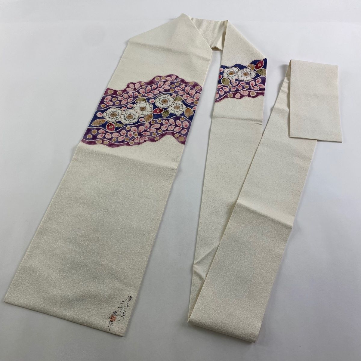 名古屋帯 落款 辻が花柄 絞り クリーム 正絹