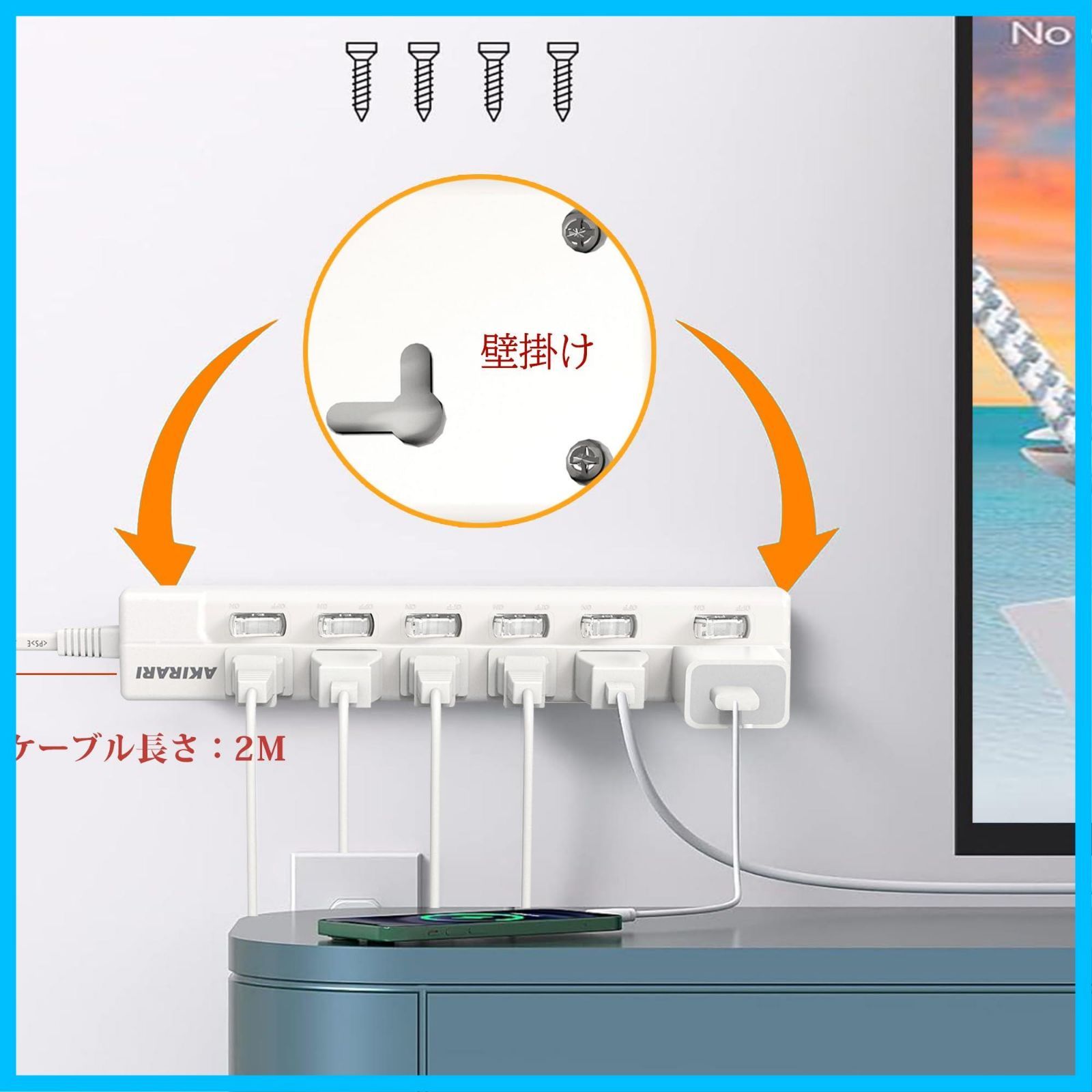 KIMOC 電源タップ 6口 2m 雷ガード ホワイト 個別スイッチ スイッチ電源タップ テーブルタップ 延長タップ おしゃれ 延長ケーブル 2m 家庭用AC電源6個口 ほこりシャッター付 配線しやすい すき間 180度スイングプラグ トラッキング防止 電気節約 電源タップ 延長コード 電源 延長コード 2m ほこり防止シャッター付 壁 (2m6個口)