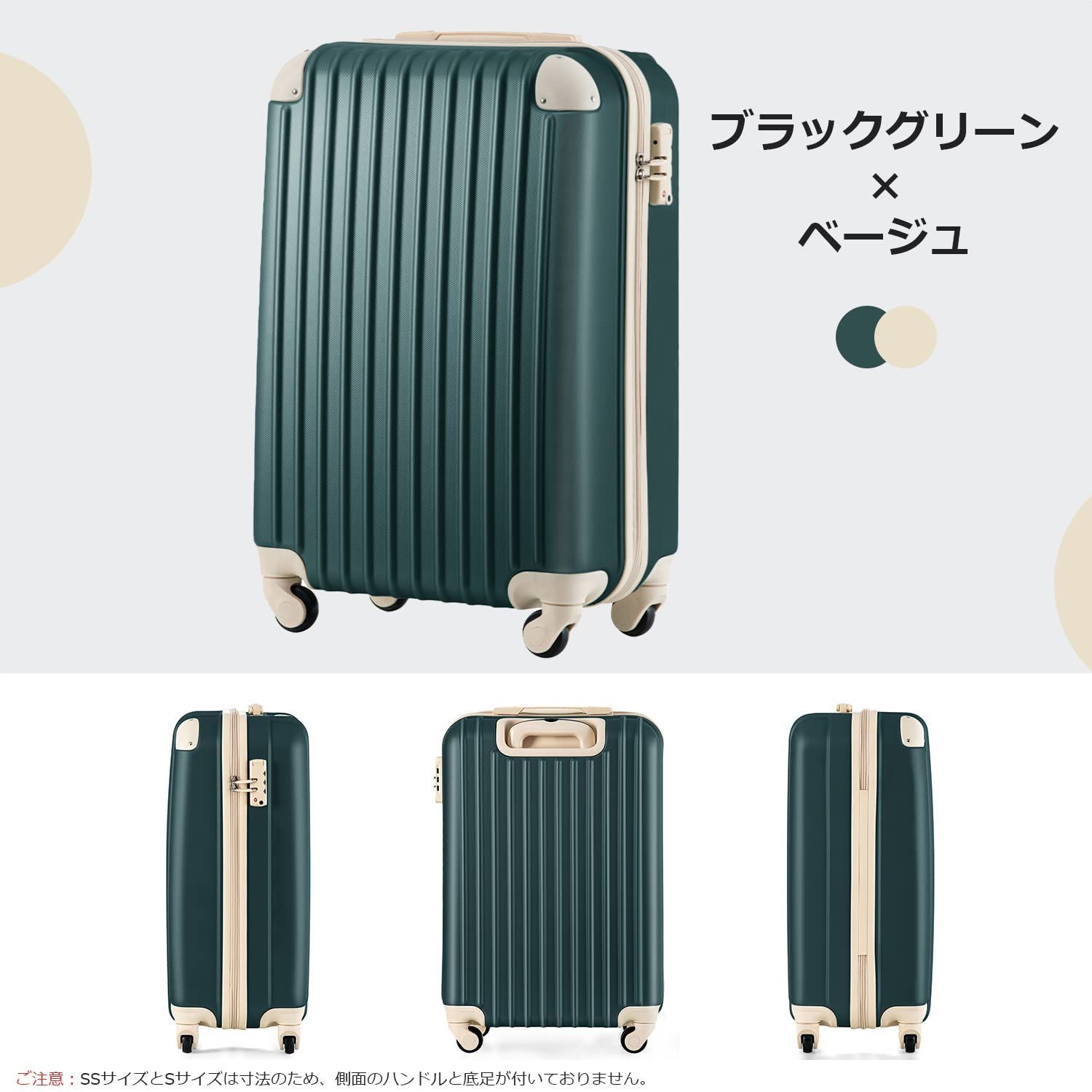 BTM スーツケース キャリーケース 機内持ち込み 軽量 Sサイズ かわいい おしゃれ キャリーバッグ TSAロック搭載 小型 2日 3日 1 suitcase T8088 トラベルハウス目玉 静音 ブラックグリーン×ベージュ