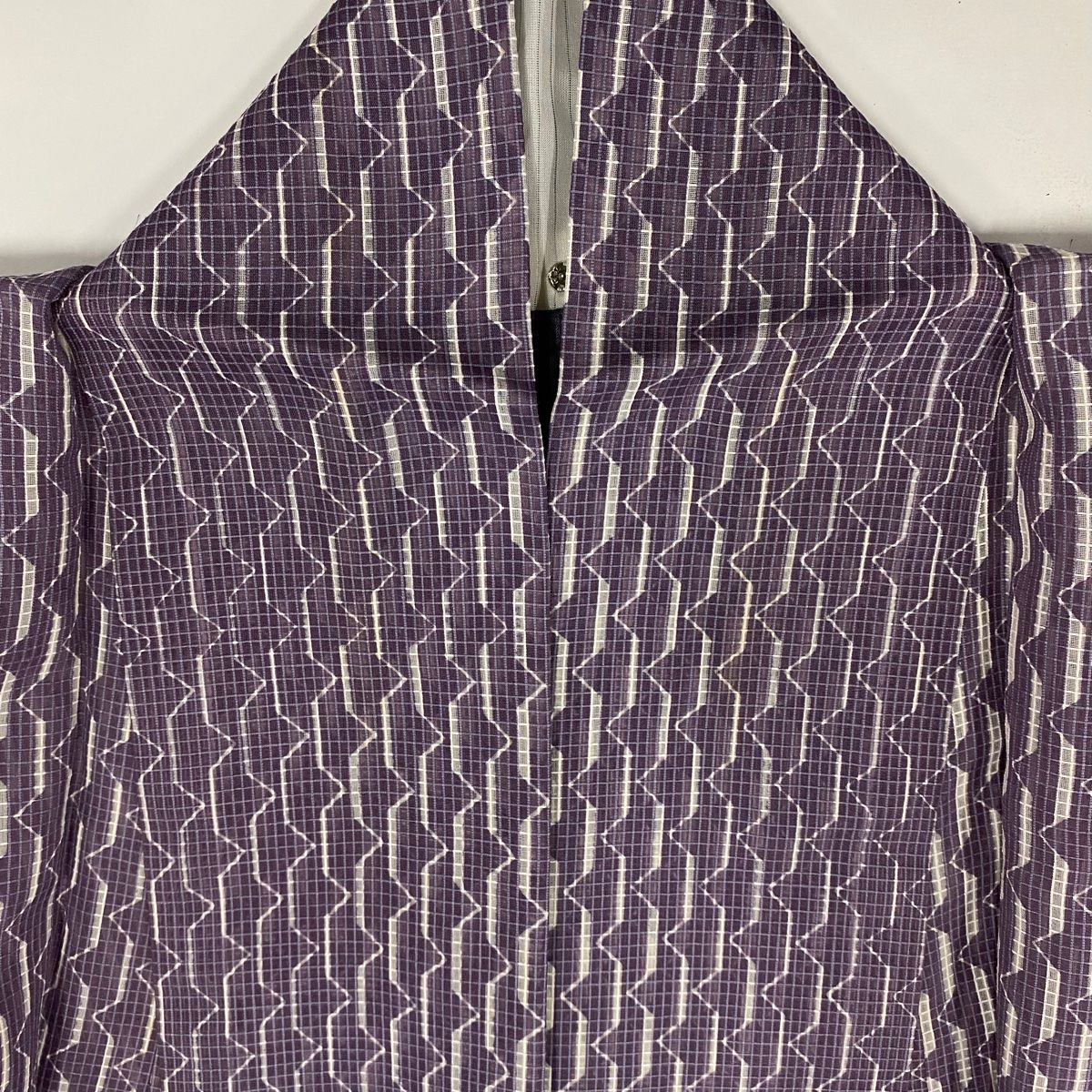 小紋 身丈157 cm 裄丈62 S 薄物 幾何学模様 紫 正絹 秀品