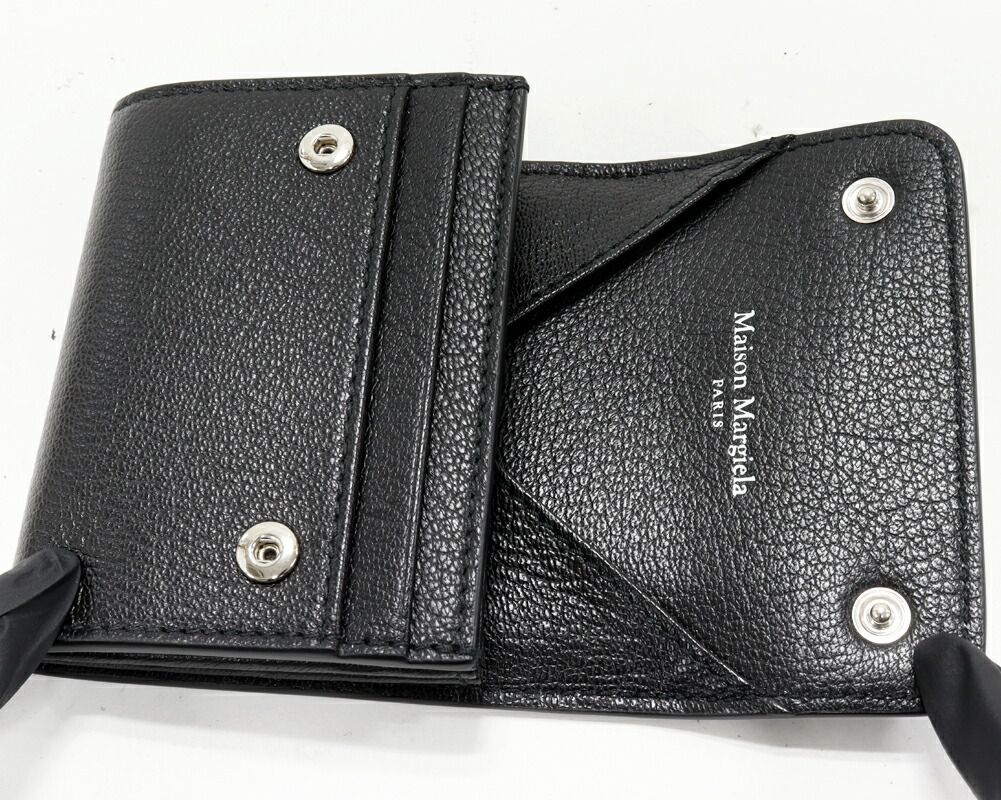 メゾンマルジェラ カードケース コインケース 4ステッチ ウォレットクリップ アコーディオン ゴートレザー ブラック ミニ財布