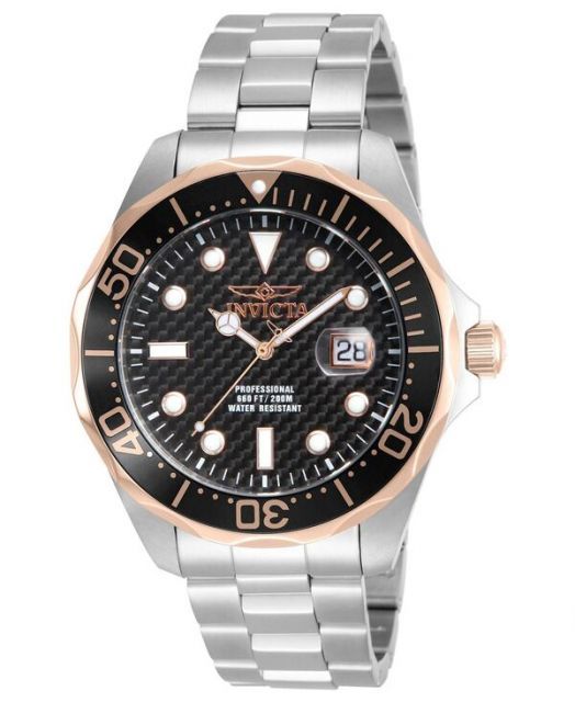 インビクタ メンズ 腕時計 Men s 12567 Pro Diver Quartz 3 Hand Black Dial Watch Silver