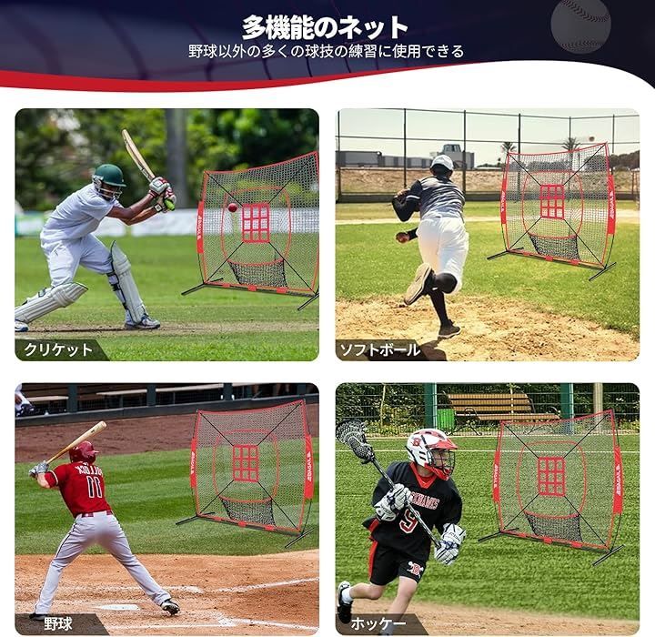 野球ネットだけでなく、ソフトボール・クリケット・ホッケーなど他のスポーツの訓練にも使用できます。