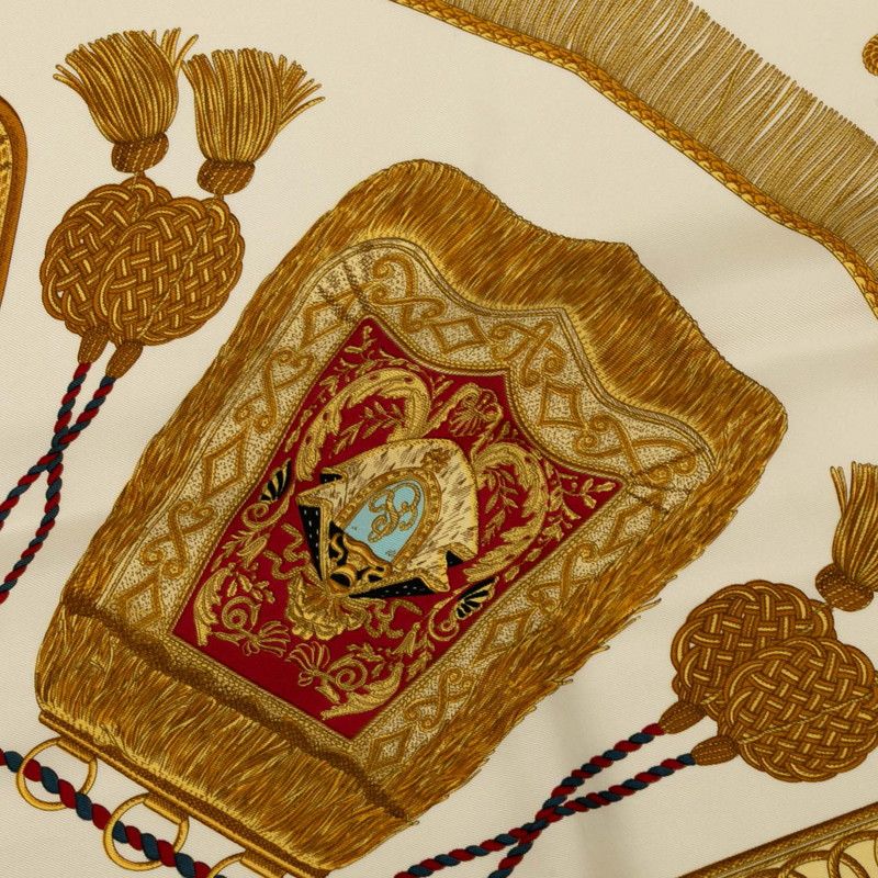 エルメス カレ90 POSTE ET サーベル飾袋 ホワイト ゴールド マルチ シルク レディース HERMES 1-0231486