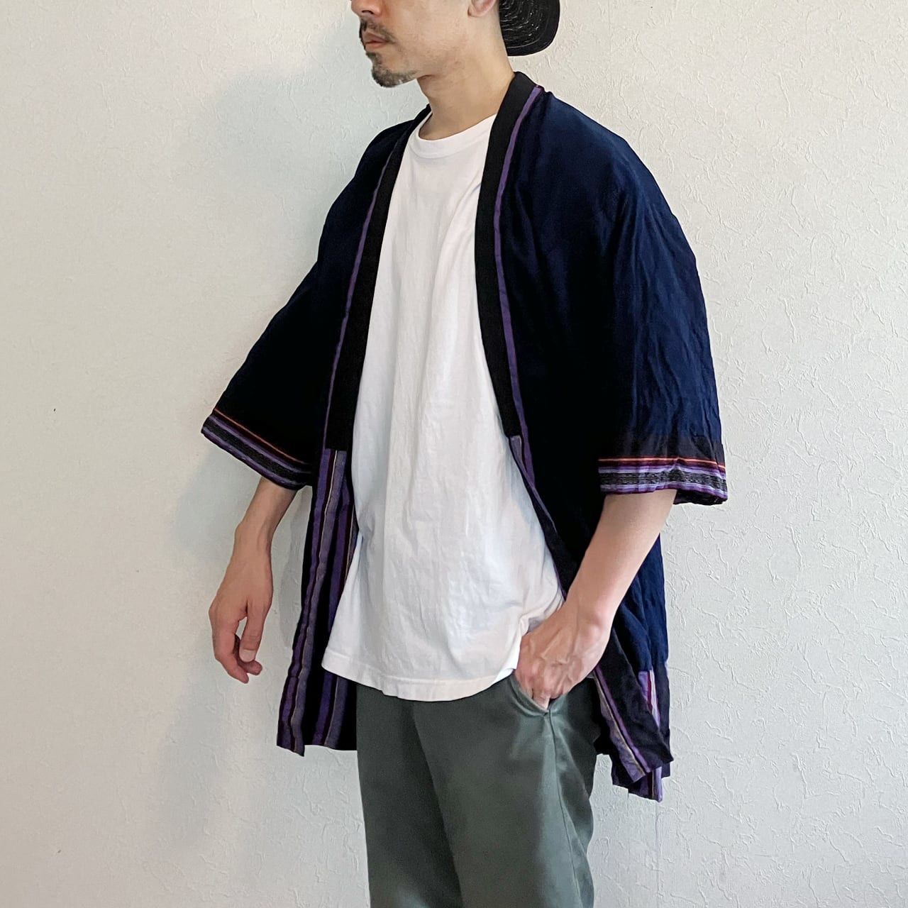 昔ながらの縞模様が映える表面に、裏返せば藍無地が静かに存在感を放つ野良着です。