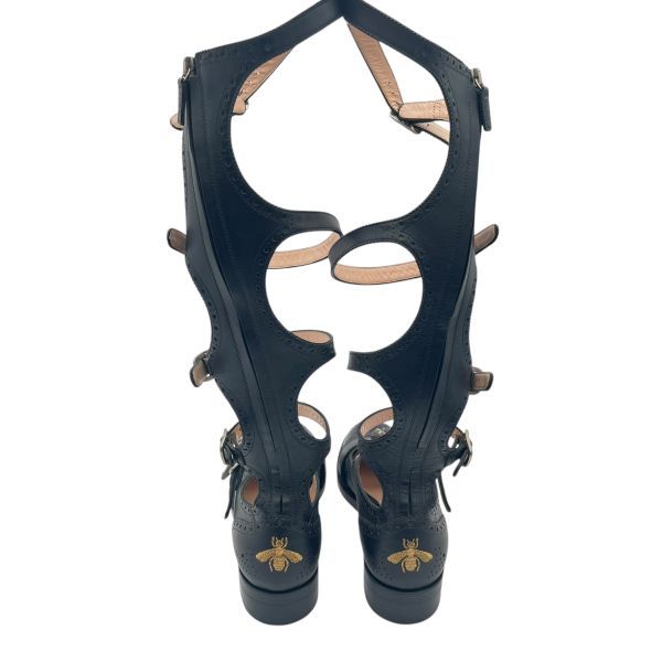 グッチ GUCCI ブーツ クイアコア ブローグ 穴飾り グラディエーターBrogue Gladiator 黒 37 約24 cm レディース S 5 X 057