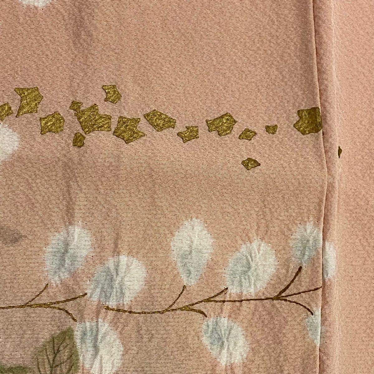 訪問着 身丈160.5 cm 裄丈63.5 S 袷 滝泰 落款 枝花 ヱ霞 金彩 絞り ピンク 正絹 秀品