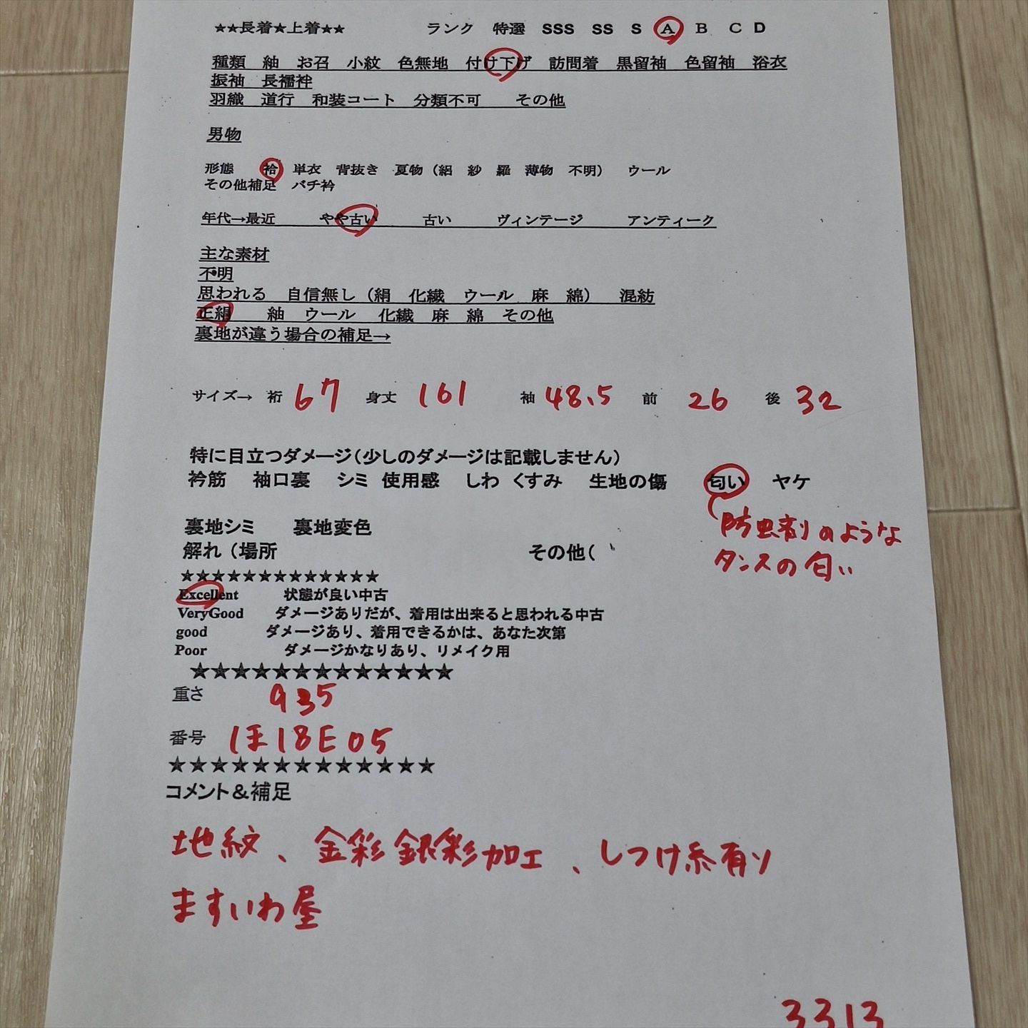 少々箪笥の匂いがしますが、特に目立ったダメージもなく、大変良い状態です。