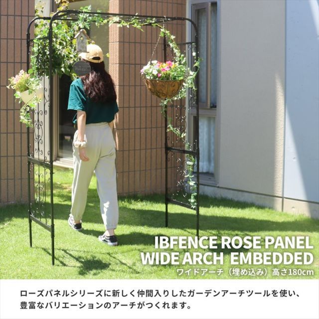 ガーデンガーデン IBフェンス アイアン ローズパネル ワイドアーチ 埋め込みタイプ 高さ225 cm IBF-RSPNL-