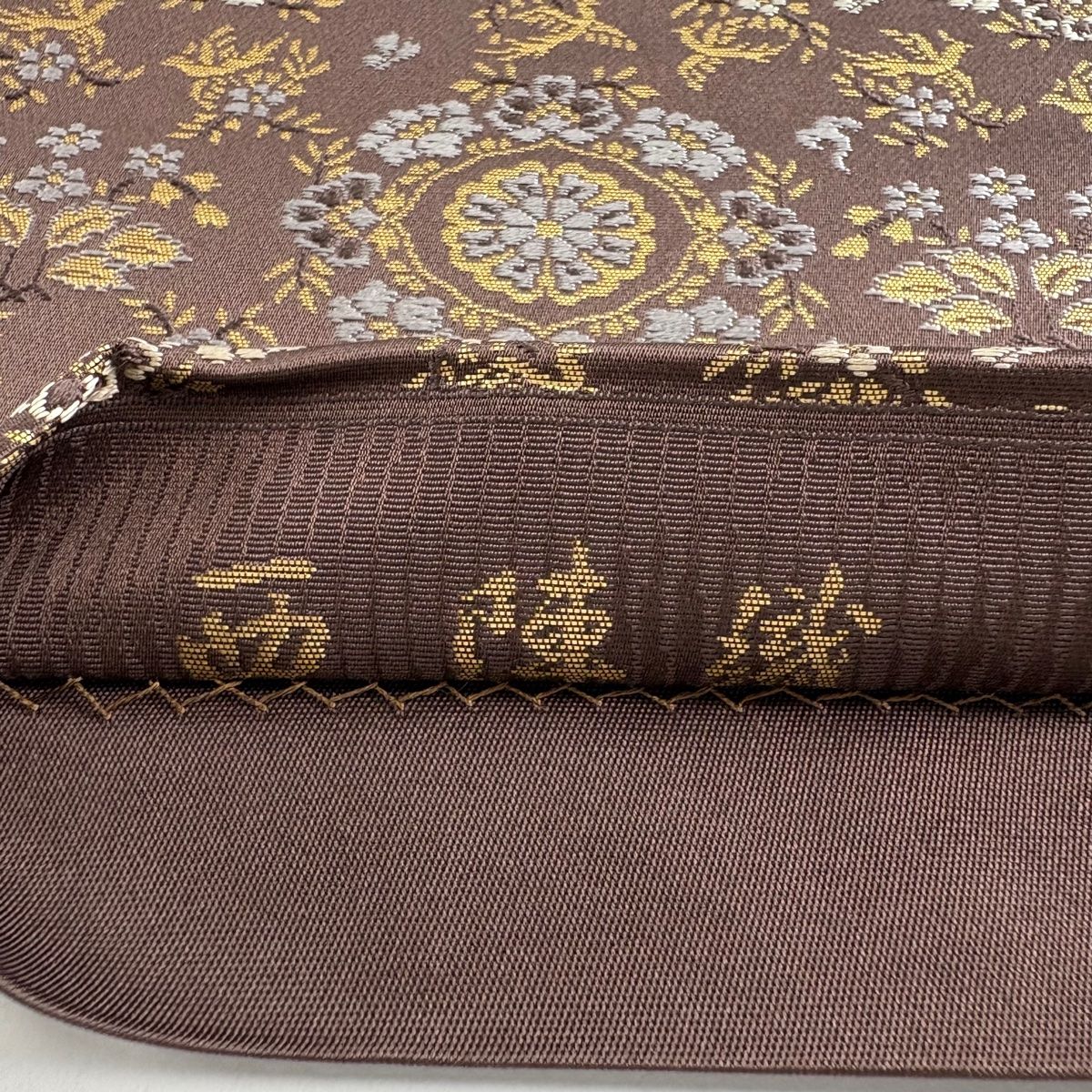 袋帯 西陣織 華文 花鳥 箔 刺繍 茶紫 全通 正絹