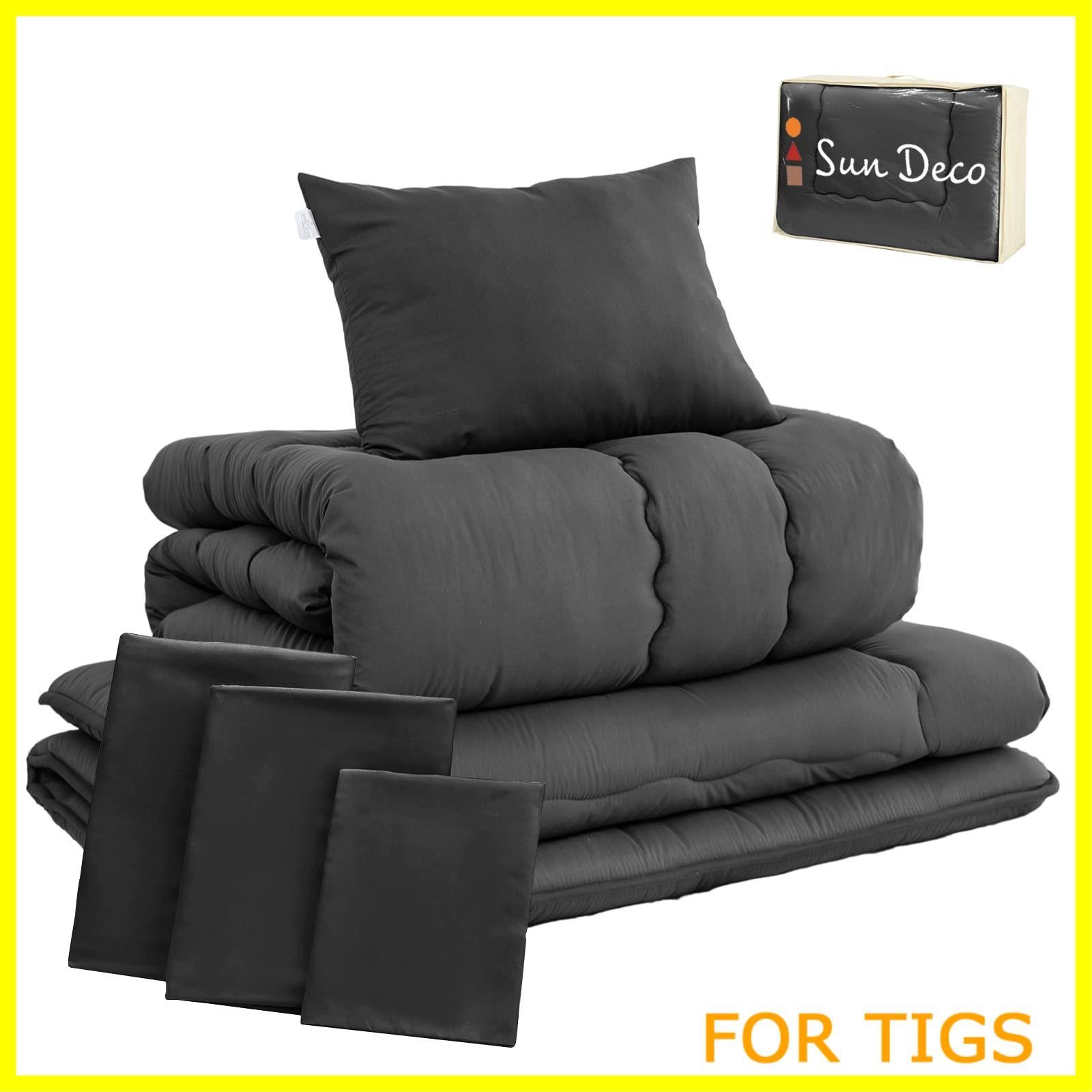 Sun Deco 布団セット シングル 布団 7点セット 寝具セット 来客用布団【SEK認証】【TEIJIN マイティトップ中綿使用・敷き布団】防菌防臭 洗える 中綿約1.6kg 掛け布団 シングル 敷布団 枕 布団カバー3点 収納ケース付き ピーチスキン加工 オールシーズン 防カビ ブラック