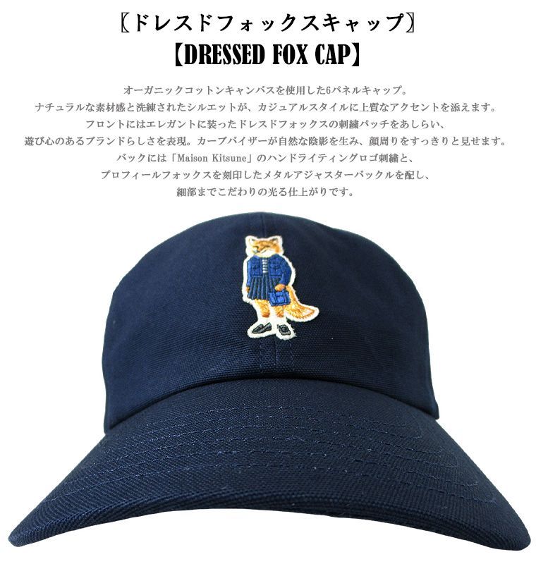 MAISON KITSUNE メゾンキツネ ドレスドフォックスキャップ 兼用 レディース メンズ ベースボールキャップ コットン おしゃれ 通勤 通学 大人 男女兼用 ユニセックス プレゼント