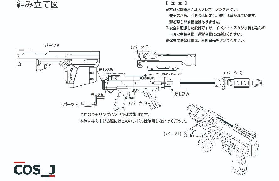 撮影やイベント使用を想定し、銃口は塞ぎ、引き金は固定されていますので安心してお使いいただけます。