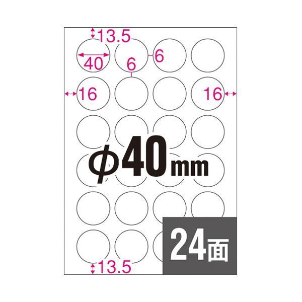 まとめ エーワン ラベルシール インクジェット 超耐水光沢紙 ホワイト A 4 24面 丸型40 mmφ 64424 1冊 10シート