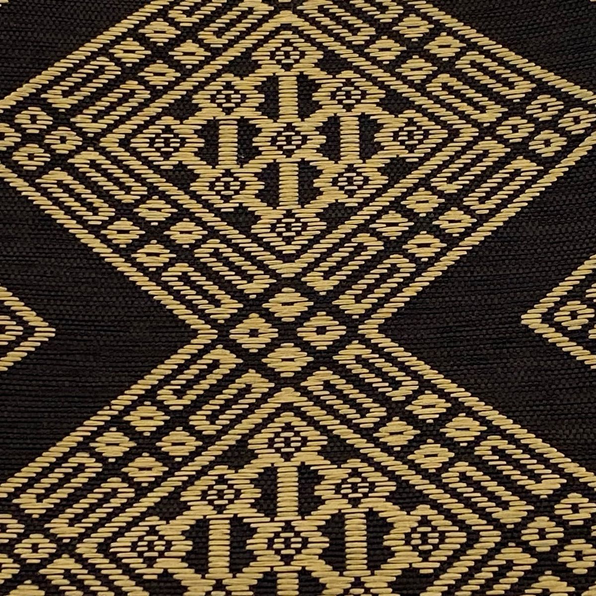 半幅帯 証紙 菱 幾何学 焦茶色 正絹