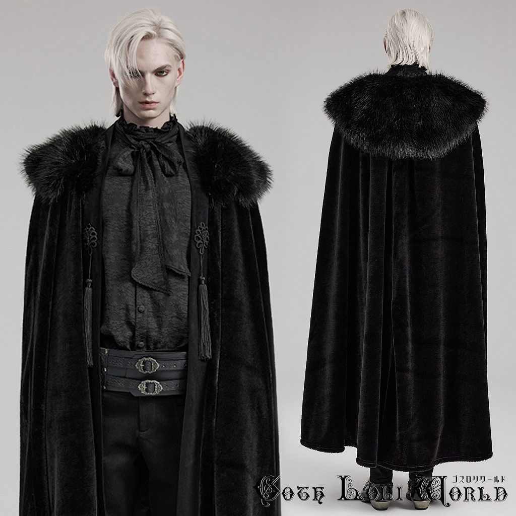 WY-1557 DPM-BK 着脱フェイクファーケープタッセル付 クローク コート ファッション ゴシック ゴスロリ パンク ロック ロリィタ ビジュアル系 V系 モード系 地雷系 サブカル 個性的 コスプレ ライブ ステージ 舞台 仮装 骨格 衣装