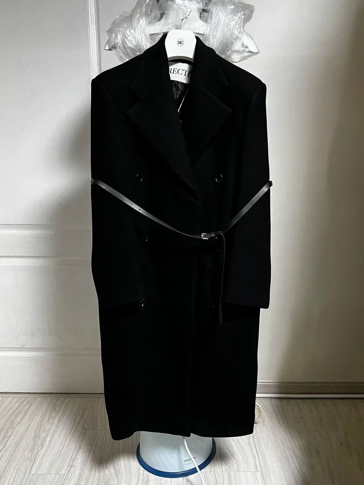 レクト ジヴェルニー フェルト ベルト ディテール ダブル ブレスト コート ブラック