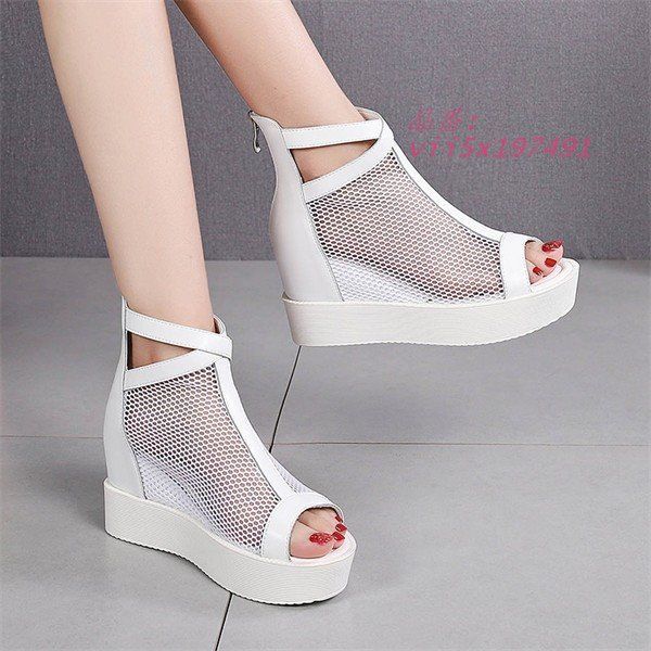 ブーツサンダル 厚底 レディース サマーブーツ 夏ブーツ 厚底サンダル 美脚 おしゃれ オープントゥ サンダル ウェッジソール ハイヒール 通気性 メッシュ ショートブーツ ヒールサンダル 後ファスナー付き カジュアル C6Z7