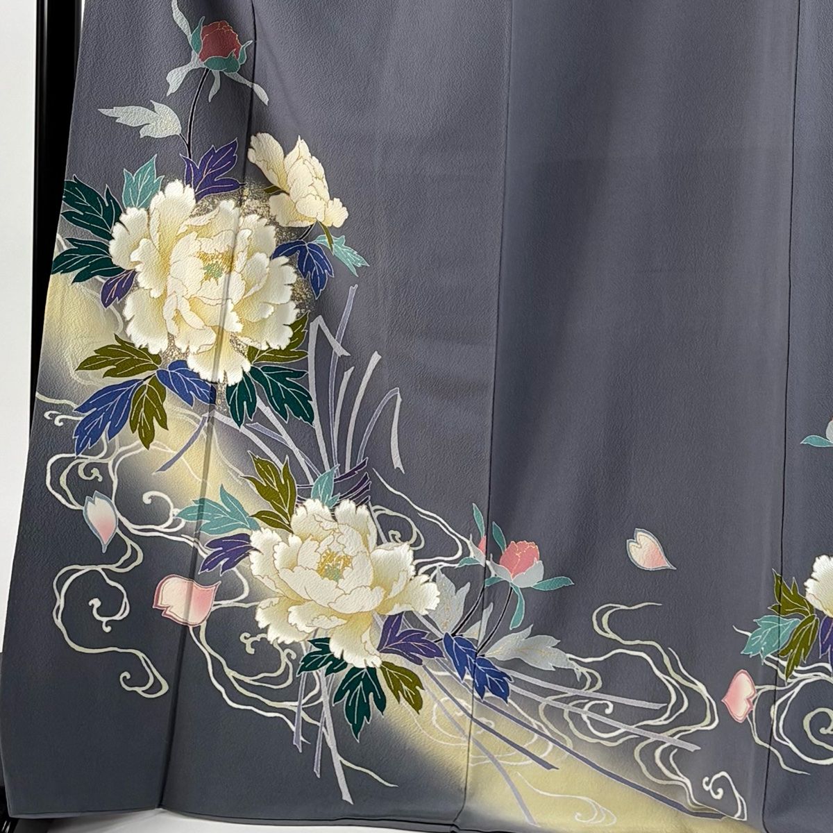 訪問着 身丈171 cm 裄丈68 L 袷 牡丹 流水 金銀彩 ぼかし 灰色 正絹 秀品