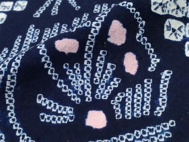 平和屋着物∴夏物 浴衣 有松鳴海絞り 流水扇舞蝶文 綿 ng