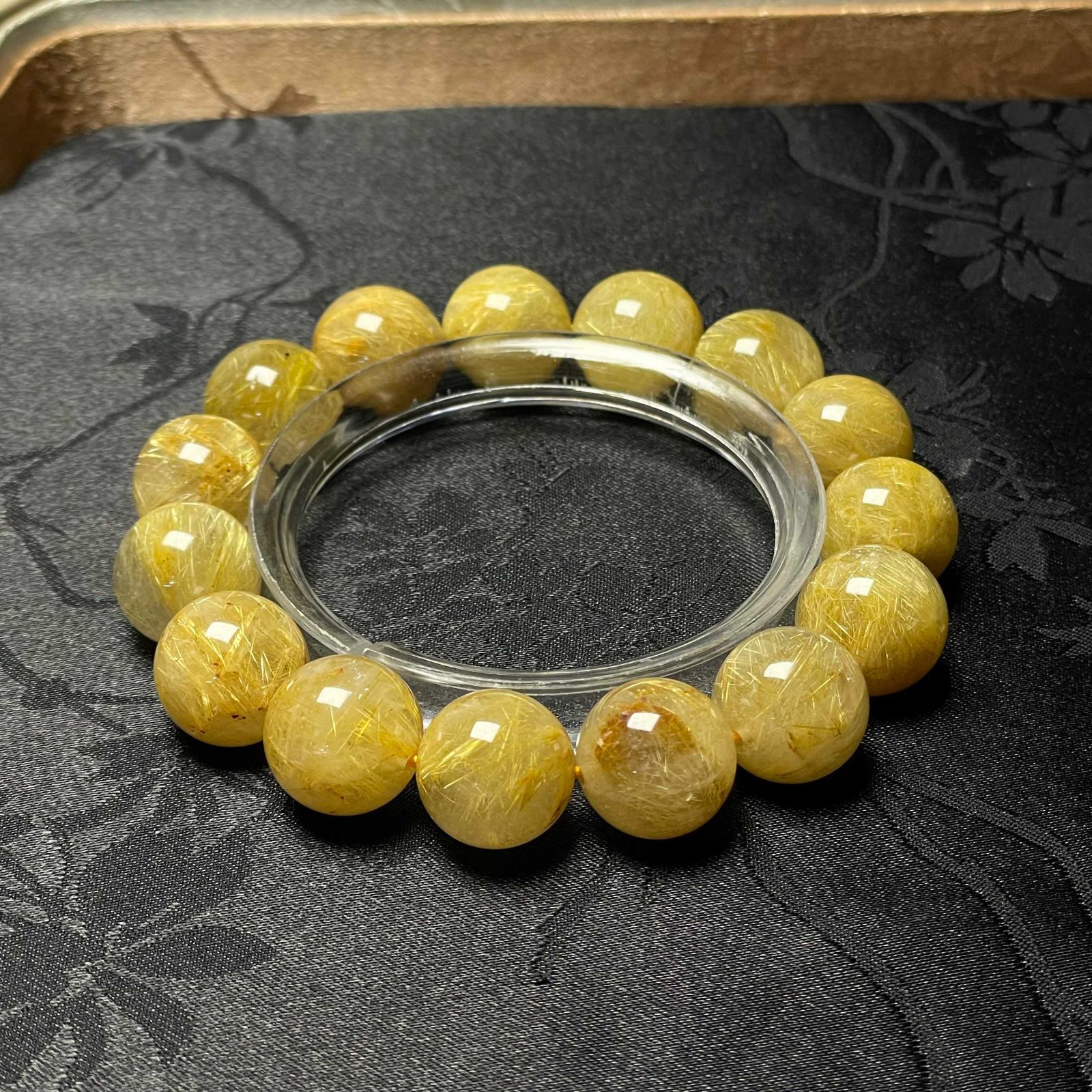 EU製 ! 満針ルチルクォーツ ブレスレット パワーストーン 天然石 金運 お守り プレゼント 13.7-14.1 mm ZB 9548