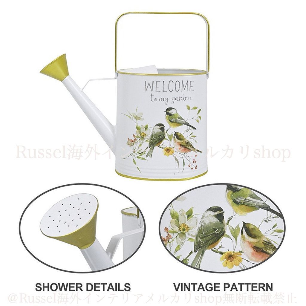 ジョウロ ヴィンテージ調 花 鳥 絵 イラスト ホワイト 庭 バード フラワー じょうろ 鉄 ガーデニング 雑貨 ガーデン雑貨 ガーデンインテリア ガーデン インテリア 庭の装飾 お洒落 おしゃれ 8-14