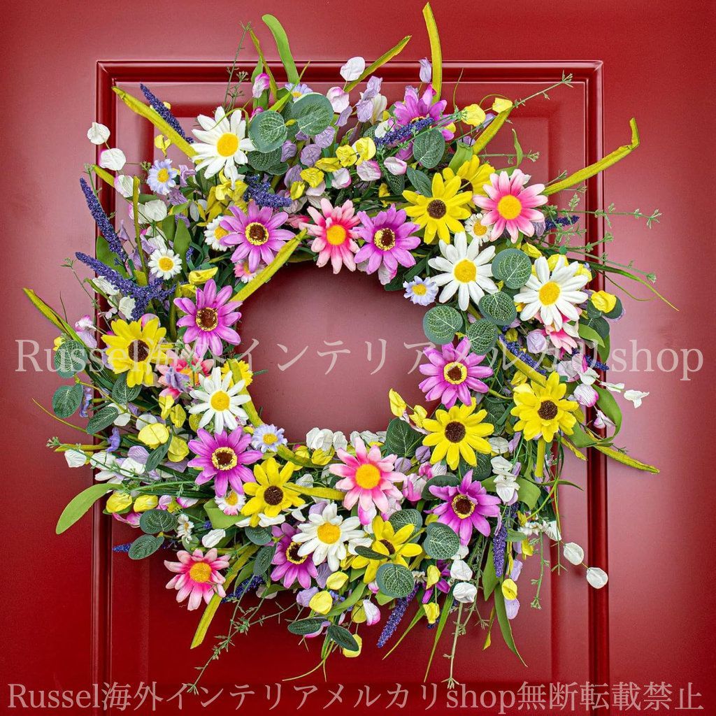 ガーデンオブジェ デイジー カラフル ピンク グリーン リース 壁掛け ガーデンオーナメント フェイク 造花 ガーデニング 雑貨 ガーデン雑貨 ガーデンインテリア ガーデン インテリア 庭の装飾 お洒落 おしゃれ 8-14