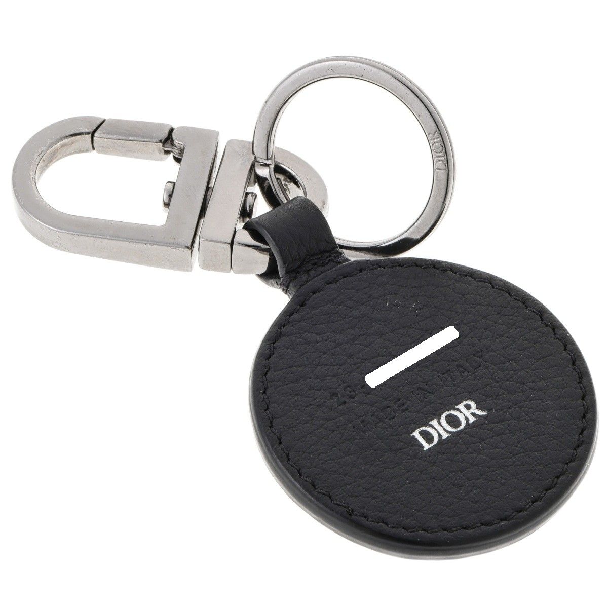 ディオール DIOR ディータッチ オブリーク シグネチャー キーホルダー キーリング _H 00 N グレインドカーフスキン メタル シルバー ブラック S-159077
